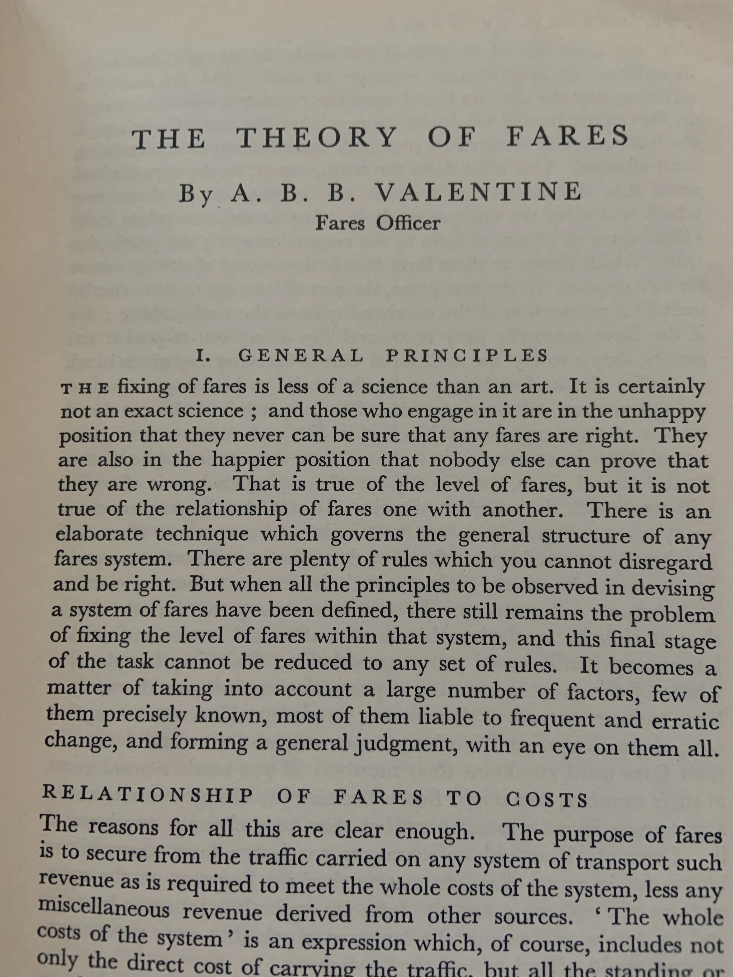 Here (below) is page one of the essay The Theory of Fares by ABB Valentine, London Transport’s Fares Officer.